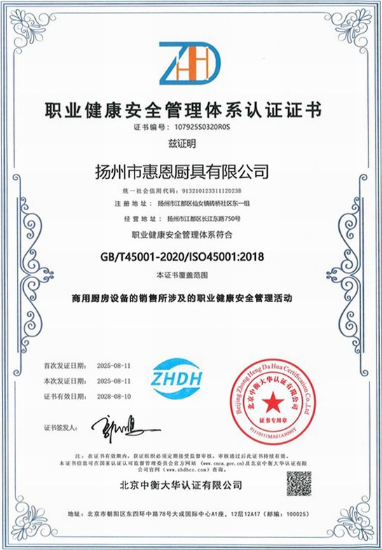 职业健康安全管理体系认证证书